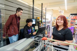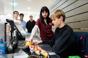 In vier Gruppen aufgeteilt, konnten die Schüler:innen verschiedene Bereiche der Lehrlingsausbildung erkunden. In der Feinkostabteilung wurden Brötchen zubereitet, während an der Kassa Testeinkäufe abgewickelt wurden. Zudem lernten die Jugendlichen in der Frische- und Trockenwarenabteilung, wie Regale fachgerecht nachbesetzt werden.